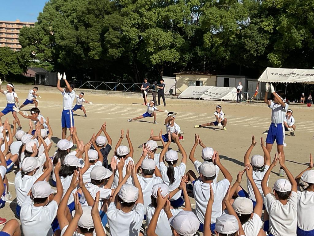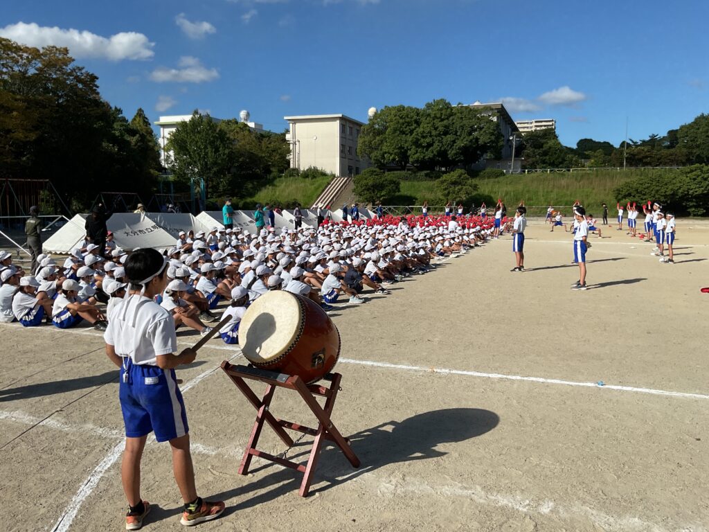 今日は1時間目に2回目の全校練習が行われました。今日の練習では、閉会式の流れについて確認した後、紅白に分かれて応援練習を行いました。応援練習では、応援団の応援パフォーマンスに合わせて、各組の児童たちは大きな声と手拍子で練習に励んでいました。グラウンドでの大きな応援の声や手拍子が地域のみなさんにも聞こえるくらい響いていました!