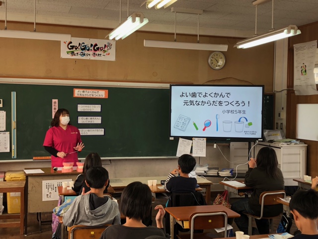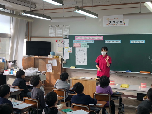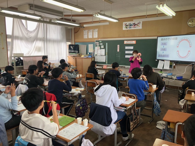 大分市では、歯と口の健康づくりの一環として全小中学校に歯科衛生士さんを派遣して歯みがき指導を行っています。本校では、今日の2、3時間目に3年生と5年生を対象に歯みがき指導を行いました。3年生では、自分の口の中を観察し、「歯のつくり」や「なぜむし歯になるのか」について学びました。5年生では、「むし歯と不十分な歯磨きによって起こる歯肉炎」について学び、授業の最後に各学年とも正しい歯みがきの仕方について学びました。ぜひ、今日の授業で学んだことを日常の生活の中でも活かし、いつまでも健康な歯を保っていきましょう。