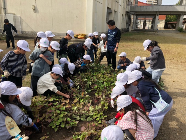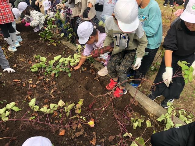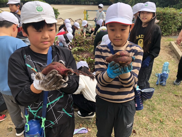 今日は2年生が5月末に学級園に植えたさつまいもの収穫体験を行いました。夏の暑い時期も2年生は毎日登校後のルーティンとして苗への水やりを行ってくれました。今日の体験学習では、児童たちは宝物を探すように、一生懸命大きく育ったさつまいもを収穫していました。今日収穫したさつまいもは今後みんなで美味しくいただく予定とのことです!