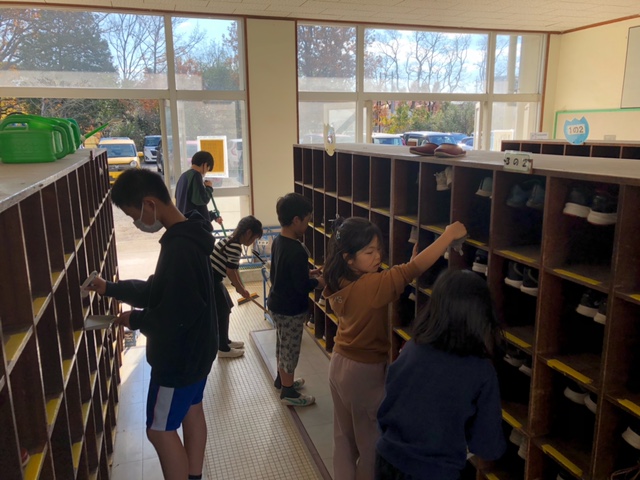 2学期(今年)も残すところあとわずか(登校するのはあと7日)となりました。今週は児童のみなさんが勉強や運動に頑張ってきた校舎、体育館などの汚れを落とし、気持ちよく冬休み(新年)が迎えられるよう、「ぴかぴか週間」の取組が始まりました。各学年のみなさんの清掃の様子をみてまわりましたが、雑巾で隅々まで丁寧に床をふいたり、風でたくさん散っている枯葉を一生懸命ほうきで掃くなど、無言で清掃に頑張る多くの子どもたちの姿をみることができました。