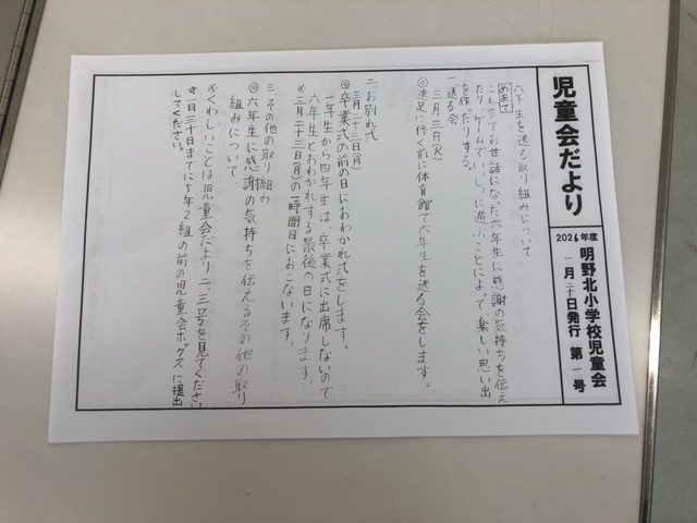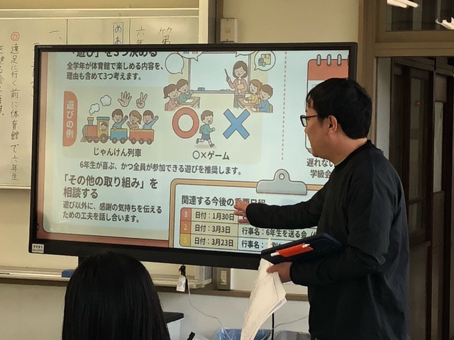 今日は6時間目に3学期最初の代表委員会を行いました。今回の代表委員会からは6年生は参加せず、5年生が他学年の先頭に立ち、会を進めていきました。今回の代表委員会での主な議題は、「6年生を送る取組」についてでした。3月に行われる「3年生を送る会」や「お別れ式」の内容のほか、「6年生に感謝の気持ちを伝えるには、どのようなことをしていけばよいのか」など、今日提案のあった内容は明日以降、各クラスで話し合いを行っていきます。これまで6年生にお世話になったことを振り返りながら、明日からのクラスでの話し合い活動を行ってもらいたいと思います。