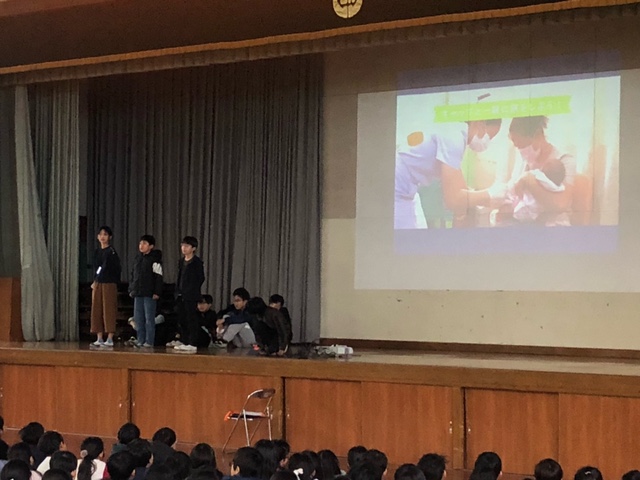 また、ボランティア委員会からは、ペットボトルキャップや空き缶回収が、世界の子どもたちへのワクチン接種や本校の学級文庫の本になっていることの紹介がありました。