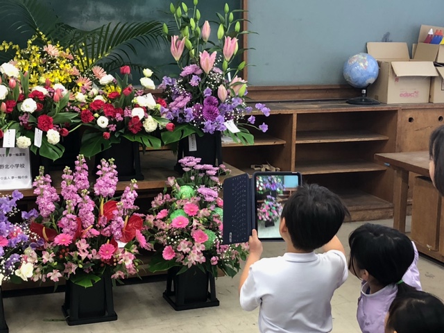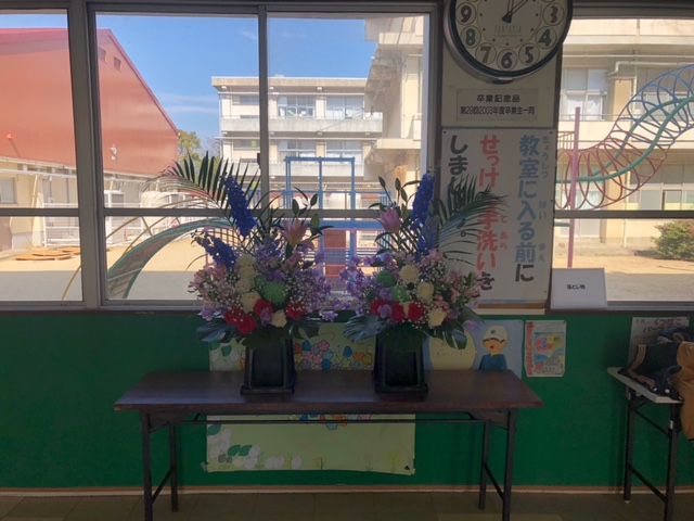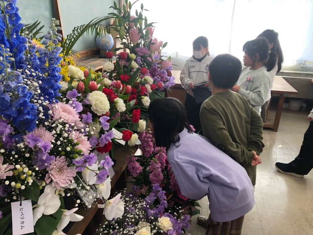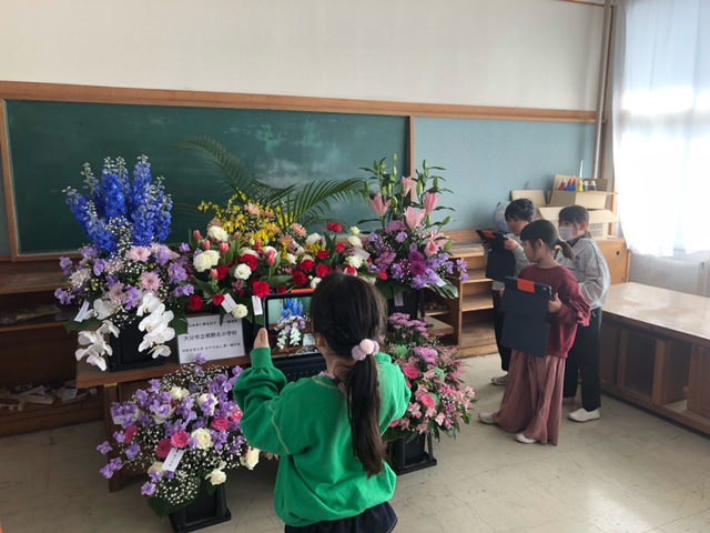 本日(20日)から、「夢一輪運動」で2年生が鑑賞したお花を、大分県華道協会やフラワーアレンジメント教室の先生方が、改めて生け花(作品)として、3か所の児童昇降口に飾っていただきました。保護者の皆さま方も、学年末参観懇談会等で来校された際には、ぜひご覧ください!