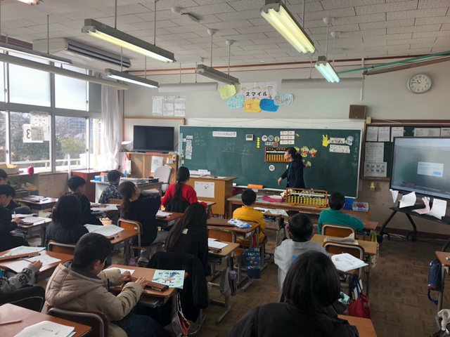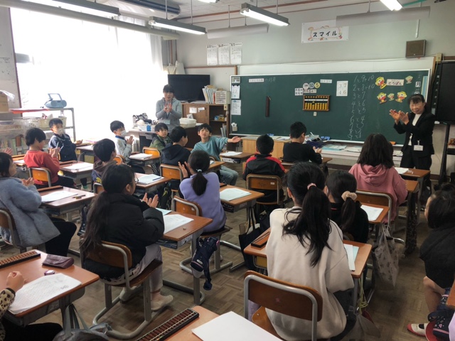今週の17・19・20日の3日間、大分そろばん指導協議会の先生方3名をゲストティーチャーとしてお招きし、3年生の算数の授業でそろばんを使っての学習を行いました。約8割の児童が今回の授業で初めてそろばんを扱うということもあり、子どもたちはそろばんに興味津々の様子で、先生方の話を集中して聞き、楽しく授業に取り組んでいました!