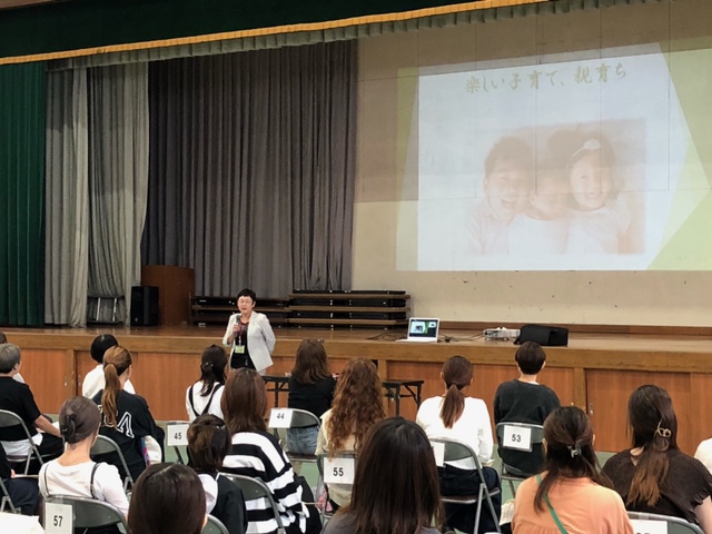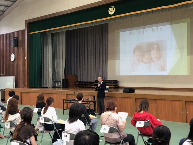 今日は午後から、来年度小学校に入学予定の幼児とその保護者のみなさんが来校し、就学時健康診断と子育て講演会を実施しました。健康診断に行く前の子どもたちは、本校の先生方の話をよく聞き、落ち着いて並ぶことができていました。来年の入学が楽しみになりました。子育て講演会では、軸丸良子先生を講師にお招きし、「楽しい子育て 親育ち ~就学までに身につくと倍楽しい小学校生活~」の演題で、講演をしていただきました。子どもの自己肯定感を高めるために、日頃から「子どもとスキンシップは取れているか」、「子どもを認める言葉かけはできているか」など、子どもとのかかわり方を振り返る良い機会となりました。