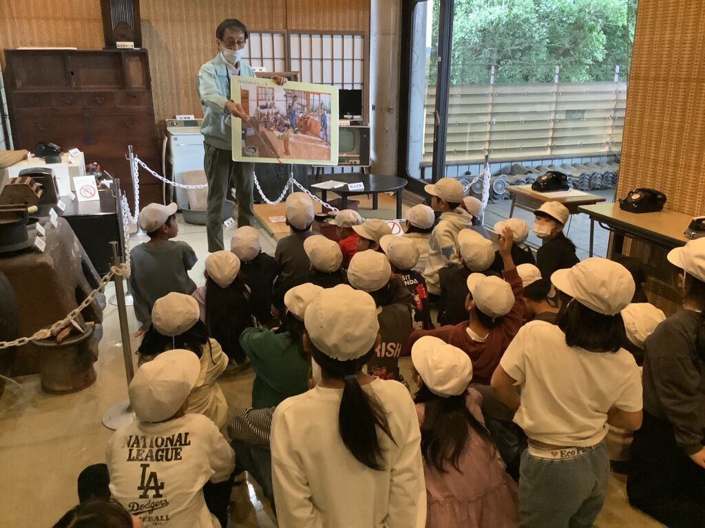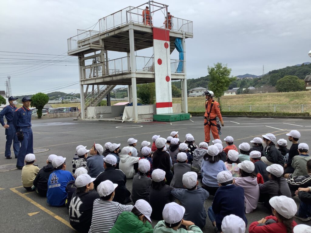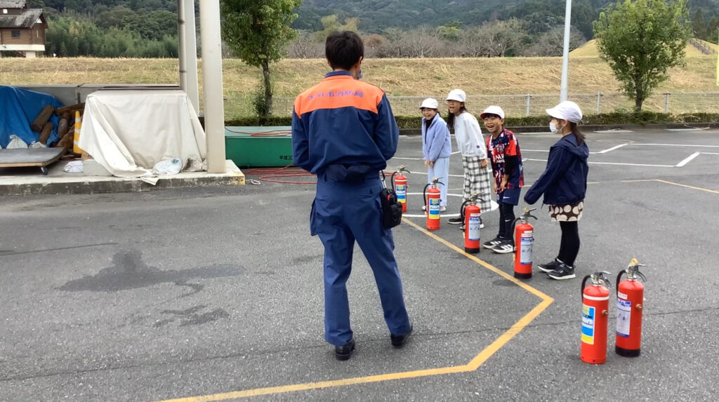 今日は3年生の見学遠足が行われました。午前中は大分南消防署を訪れ、私たちの命や安全なくらしを支えてくれている消防署のみなさんの仕事内容や思いについて話を聞くことができました。また、消防士の方が着ている防火衣の着用や水の入った消火器を使っての消火体験などを行いました。午後からは大分市歴史資料館に移動し、職員の方から昔の人たちの暮らしについて説明を聞いたり、火おこしの体験なども行いました。子どもたちは熱心な表情で職員の方の話を聞いたり、体験学習に取り組んでいました。
