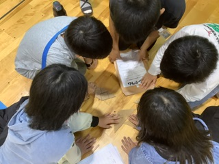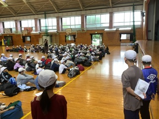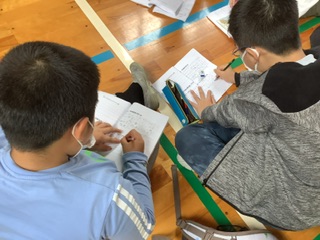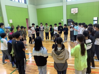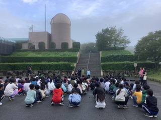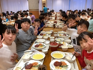 9月24日、25日はのつはる宿泊体験学習でした。1日目、体育館で出発式を行いのつはるへ向かいました。天候が雨だったこともあり、急遽、室内ハイキングに活動を切り替え実施しました。10のミッションがあり、それらをクリアしていきます。みんなで知恵を出すものもあれば、体を動かして体力勝負、運勝負のミッションもあり歓声が上がるほどすごく盛り上がりました。その後、室内レクリエーションで活動レクが中心になって工夫した遊びを計画してくれました。クラスが円になって全員の手拍子タイムを競うゲームや、じゃんけんをして負けたら相手の名前になるゲームや、総勢約160人で行う「だるまさんが転んだ」や「言うこと一緒やること一緒」ゲームなど、時間も忘れるほど楽しみました。入浴、夕飯、そして雨で天体望遠鏡をのぞくことはできませんでしたが、室内で星の講話を聴きました。興味のある話で、児童は食い入るように指導員さんの話を聞いていました。星が大好きな児童も多く、指導員さんが話す前に答えを言ってしまうほどの豊富な知識で驚きました。