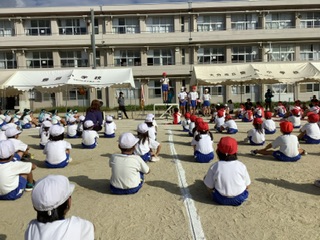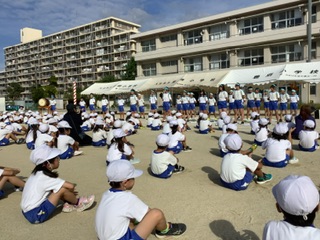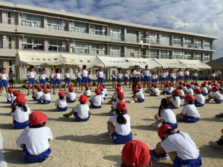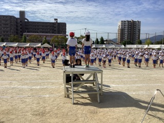 今日は初めての全校練習でした。最初に結団式があり運動会のスローガンや赤白のめあてが発表されました。赤組応援団長は吉田さん 副団長は羽根さん、白組応援団長は辛島さん、副団長は川端さんです。初めて全校の前で紹介されるという事もあって緊張したと思いますが、マイクなしでも運動場に響く立派な声と態度でした。これから3週間、喉を大切にしながら精一杯の活躍を期待しています。その後、開会式の練習でした。短時間とはいえ、日差しが強かったこともあり、練習中や練習後体調不良を訴え保健室を来室する児童が多かったです。学校でも児童の体調を考慮しながら練習で配慮すべきことを確認しますが、ご家庭でも睡眠と食事等の徹底や声かけをぜひお願いします。