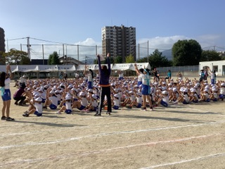 今日は、2回目の全校練習でした。主に、体操と応援練習を行いました。2日に実施した全校練習で、体調不良を訴える子が多かったことから体育担当や応援担当が休憩(水分補給)を計画的にとったり、座って聞く時間を設けたりしながら進めました。練習後保健室に来室する児童はほとんどいませんでした。次の全校練習は9日木曜日です。全校競技の練習が計画されています。