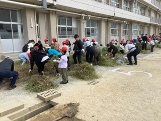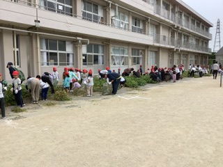 今日は親子ふれあい清掃活動でした。たくさんの保護者の方にご協力いただき感謝しております。昨年度は夏休みに実施していたとのことですが、早朝実施とはいえ熱中症指数も高かったことから本年度は、運動会の2週間前に実施するよう見直したと聞いています。絶好の作業日和で汗はかくものの雲のおかげで日差しの厳しさからは免れ作業を行うことができました。本当にありがとうございました。よく学校で「愛着」について研修を行うことがありますが、親子の間で築かれる心理的な結びつきは、同じことを一緒に行うことで得られる、と最近読んだ本に書かれていました。今日、親子で一緒に活動した清掃作業、おうちの方の汗を流す姿から子どもたちはおうちの方の一生懸命さや頼もしさを感じたのではないでしょうか。また、おうちの方も、お子さんの作業の様子から「なかなかやるなあ、がんばるなあ。」と感じた方もいるでしょうし、「共に活動する大切さや辛抱強さをもっと身に付けさせねば。」と感じた方もいらっしゃるのではないかと思います。これからまだまだ学校生活は続きます。学校とともに、我が子(児童)の大人になった姿を想像しながら、「こんな大人になってもらいたい」を描きながら、これからもどうぞよろしくお願いいたします。
