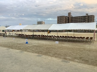 いよいよ明日は運動会です。今日まで児童も、そして先生方も、本当に頑張りました。暑い日も、きつい日も、前向きにがんばってきました。明日の校長あいさつではまずそのことをみんなに話そうと思います。そして、一生懸命にやってきたその頑張りを精一杯出してほしいと伝えます。さあ、あとは子どもたちが頑張ってきた力を出すだけです!一生懸命見守ります!おうちの方々、熱い熱い応援をお願いします。また、会場設営にお力を貸していただいた保護者役員のみなさん、ありがとうございました。明日もどうぞよろしくお願いいたします。