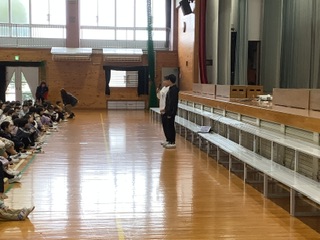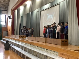 4年生の音楽発表に続き、今日は全校集会を行いました。読書の秋という事で私のおすすめの本を紹介した後、飼育委員会が学校で飼っている生き物についてのお世話のしかたを紹介したり、生活・安全委員会からは今月の目あて「みのまわり せいりせいとん きもちよく」の合言葉で自分の身の回りをきれいにしようと呼びかけたりしました。皆が集う時にトイレのスリッパや教室環境など身近で大切にしなければならないことが紹介されとても嬉しく感じました。