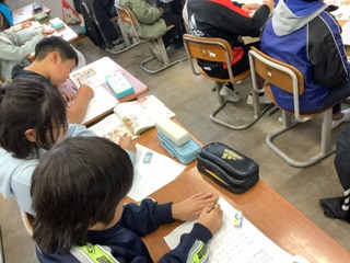 今日は初任研で4年2組兵頭先生が授業を公開しました。教科は道徳で教材は「ぼくはMVP」、正直、誠実を考える授業です。ドッジボールをしている「ぼく」の足にボールがかすってしまい、「ぼく」はアウトだと思いコートの外に出ようとします。しかし、友だちの声かけでコートの中にとどまってしまいます。チームは勝ち、「ぼく」はMVPだと称賛されます。本当のことを言い出せずにモヤモヤとした気持ちだけが残った「ぼく」。こういう経験は誰にでもあるはずです。教材の最後に「ぼく」は「でも・・・」と声を発します。本当のことを正直に言うか言わないか、学級みんなで本音を出し合い考えました。授業の最後は、兵頭先生が正直に言えなかった自分自身の経験を話し、そのことを今でも後悔していること、そしてこれから先、同じようなことがあった時には正直にいようと今思っていることを説話として伝えました。