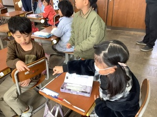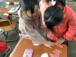 10日、1年2組の山内先生が2年目研修の授業研を行いました。教科は算数「くらべかた」の学習です。めあては「みのまわりのものをつかってながさをくらべよう」です。山内先生が「机の縦と横はどちらが長そうかな。どうやって比べたらいいかな」と問いかけました。本日の学習の付けたい力である「〇〇の何個分」を、担任が投げかけると同時に「同じもの(測る基準)を使ったらいいと思う。」と声が上がりました。すごいですね。これから、身近なものをさまざまな方法で「〇〇の何個分」を使いながら学習し、長さの単位に移行していきます。いろいろなものの長さに興味をもっていろいろなものの長さを自分の見つけた方法で測ってほしいです。沢山考え、たくさん失敗をし、強い子どもに成長してほしいです。