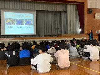今日は6年生の薬物乱用防止教室が開かれました。講師は、本校の薬剤師でもある、くすりのキャプテンキッズ豊府店の阿部みどり先生です。薬局が豊府地区にあるという事もありご存じの方も多いかと思います。内容は薬物やたばこについて、その危険性をデータや例に例えながらお話され、講演の最後には「大切なことは」と題し、「自分を大切にしよう!」「自分に自信をもってことわる勇気をもとう!」と伝えてくださいました。成長期は身体が最も成長する時期で身体の成長に対応できるように血管も大人よりやわらかいこと、そして大人よりニコチンの影響を受けやすいこともお話されました。とてもわかりやすかったです。そして、「20歳から75歳までの55年間、もし580円のたばこを1日1箱毎日吸い続けたらお金がいくらかかるか」、なんと計算では「11,643,500円!」です。高級車を買うことができます。子どもたちもあまりの驚きに隣にいる児童と顔を合わせていました。今日学習したことをきっとご家庭でも話題にするのではないかと思います。もしタバコを吸われているおうちの方に今日の学習で学んだことを伝えたら耳が痛いかもしれませんが、子どもは子どもなりにおうちの方の身体を心配してのことだということをわかってあげてください。
