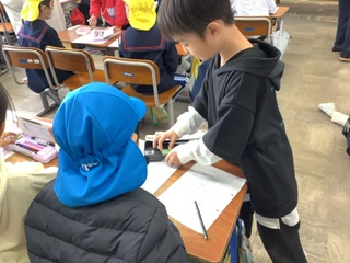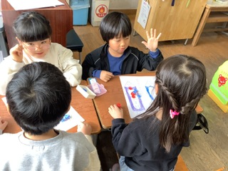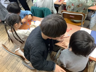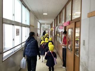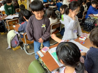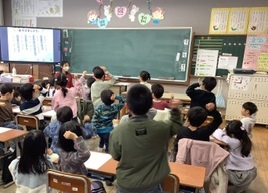 今日は保幼小交流会でした。本校の連携園である、ふたば子ども園、ごとう幼稚園、南大分保育園、愛隣幼稚園、スマイス・キッズ保育園、こどもの森スプラウトの7園が来校し、1年5学級に分散し、様々な活動を行ないました。園児を1年生の自分のいすに着席させ、自己紹介し、学校生活を紹介するところからがスタートです。中には、園児が何かをするたびに「上手だね。」と声をかけたり、文字を書く際には鉛筆の持ち方をレクチャーしたり、見ていてほっこりする光景ばかりでした。さらに、じゃんけんしておはじきを増やすゲームでは、園児の耳元で「ぼくはパーを出すからね、チョキを出してね。」などと囁く様子もありました。あまりのお兄ちゃんぶりに、その素敵な光景を担任に話すと、今日は1年生自らが、園児に良い思い出を作ってもらおうと「じゃんけんで勝たせてあげたいよね!」そう話していたこともわかりました。園児は勿論のこと、本校1年生のあたたかさと頼もしさに来年度が楽しみになりました。