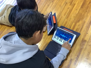 9日、5年生が音楽の授業の一環でデスクトップミュージックに挑戦しました。講師はDTMスクール福田さんです。児童が持つiPad内の音楽アプリを使っていろいろな楽器の音を出したり、組み合わせたり、重ねたり、または自分の声を吹き込んだりして楽しんでいました。最終的には校歌を編曲する活動につながりました。音を奏でる楽しさに触れ、生き生きと活動することができました。