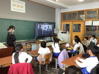 今日は4時間目終了後、全校児童を対象にいじめに関する動画を視聴しました。昨今、SNS上でのいじめや動画による拡散等、学校としても厳しく対応しなければならないニュースが起きています。そこで、本校の生徒指導部を中心に、きちんと指導ができる時間を一律にもうけようと、本日その時間を計画しました。写真は、その動画を見ている児童の様子です。動画視聴後各学級で振り返りを行いました。動画は、文部科学省が啓発している「いじめの未然防止に関する啓発動画」です。「あなたの勇気」「その時、娘は」「軽い気持ち、重い言葉」の3本です。1年生には発達段階を考えて「あなたの勇気」のみ視聴させています。どれも1分強の長さなのですぐに見ることができます。もし時間があれば、ご家庭でも文部科学省「いじめの未然防止に関する啓発動画」を検索し視聴してみてください。そして、SNSの使い方など再度お子さまとルールの見直しができるとよいなあと思っています。