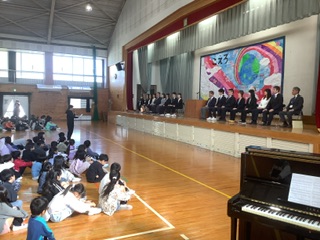 今日は新任式・始業式でした。新しく着任された先生方は22名です。子どもたちが拍手で先生方を迎えました。児童代表6年たかすぎさんが豊府小学校の素敵な所を新しい先生方にたくさん紹介してくれました。新任式の後は始業式です。児童代表2年あんどうさん、4年おおうらさん、6年かずまたさんが発表しました。2年あんどうさんの頑張りたいことは、九九と漢字で、1年生のお手本になりたいと発表しました。4年おおうらさんは、社会をがんばることと運動会のソーラン節に頑張りたいと発表し、友だちと仲良くして元気に頑張りたいと発表しました。6年かずまたさんは、下級生に優しくすることや最高学年らしい態度でがんばりたいと話し、当たり前だけど実はできていないことも自分たちがお手本になって頑張りたいとしめくくりました。式の最後は6年はらださんの伴奏で校歌を歌いました。式後、学校生活のきまりについて生徒指導担当の水之江先生から話がありました。そして、最後は担任発表を行い、新担任が先導して新しい教室に移動しました。5年生のある学級では、担任が自己紹介の中で「水泳を13年間続けてしていました。」と話すと、後ろの席の児童がかすかに聞こえる声で「俺、苦手やから教えてもらおう。・・・」とつぶやき、何だかその素直さと、水泳学習での児童の姿が思い描かれ、嬉しくなりました。どの児童も、きっと「さあ、やるぞ!」そう思って今日は登校してきたはずですし、私たち教職員も児童の期待に応えられるよう、それぞれの児童の良さをさらに発揮できるよう努めてまいります。どうぞよろしくお願いいたします。