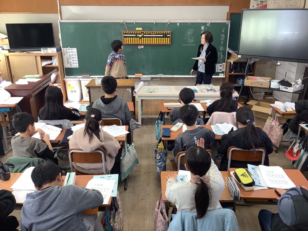 1月21日~23日の3日間、そろばん教室の講師の先生が来校し、3年生にそろばんの学習を教えてくださいました。児童は実際にそろばんを手に取り、玉の動かし方や基本的な計算の仕方を丁寧に学びました。