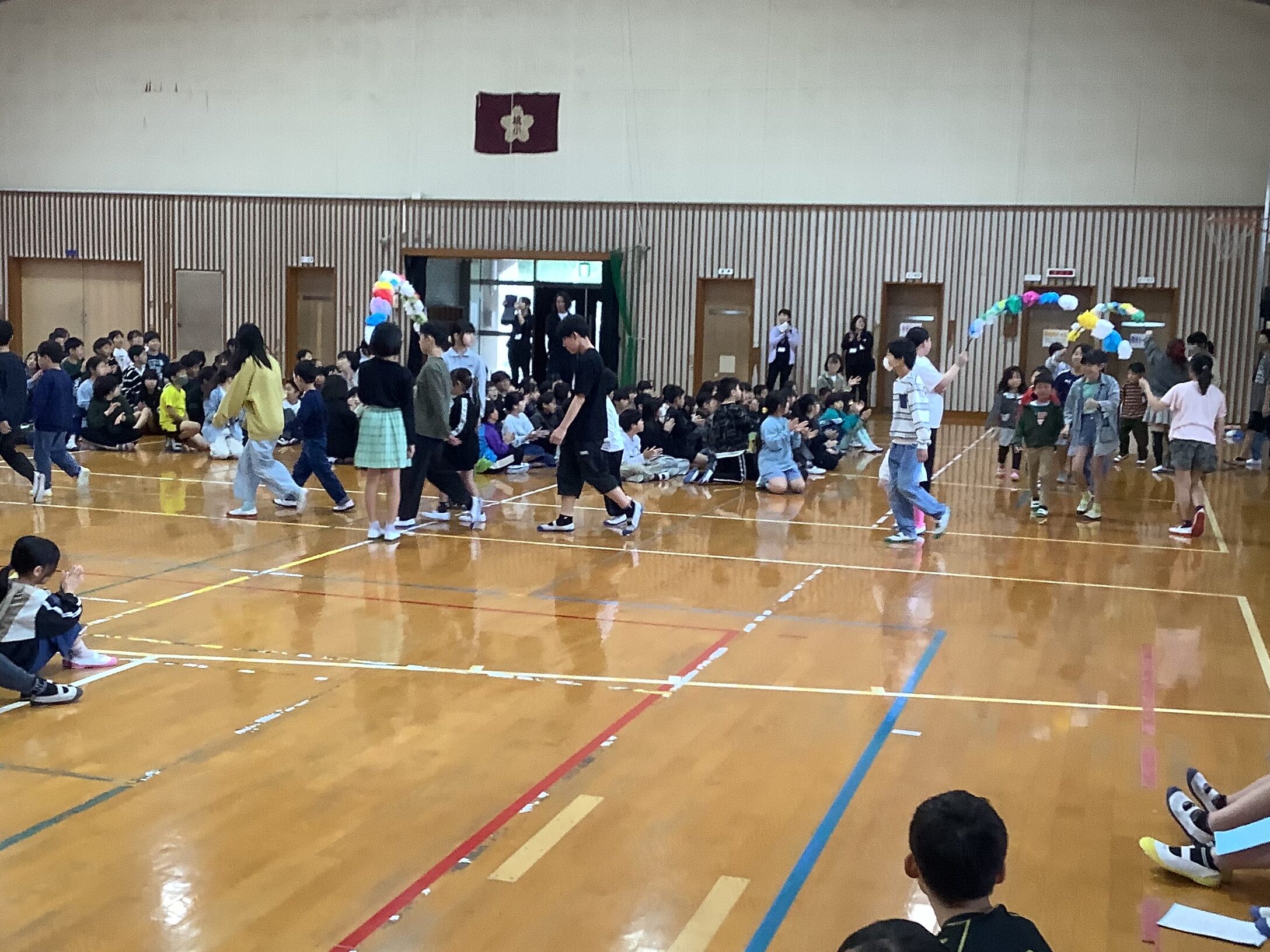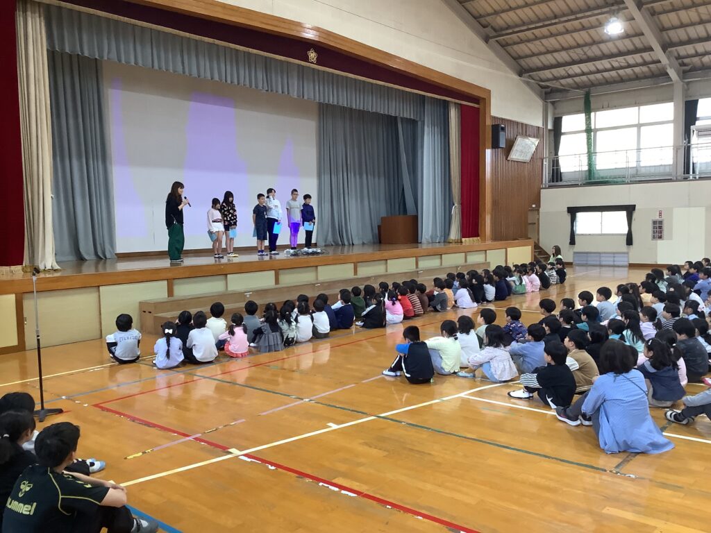 本日、1時間目、対面式が行われました。入学式同様に6年生と一緒に入場した1年生を、全校中で大歓迎しました。