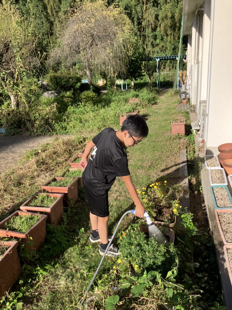 環境委員会の人は、花への水やりをしてくれています。花を愛でる心の余裕を持ちたいですね。