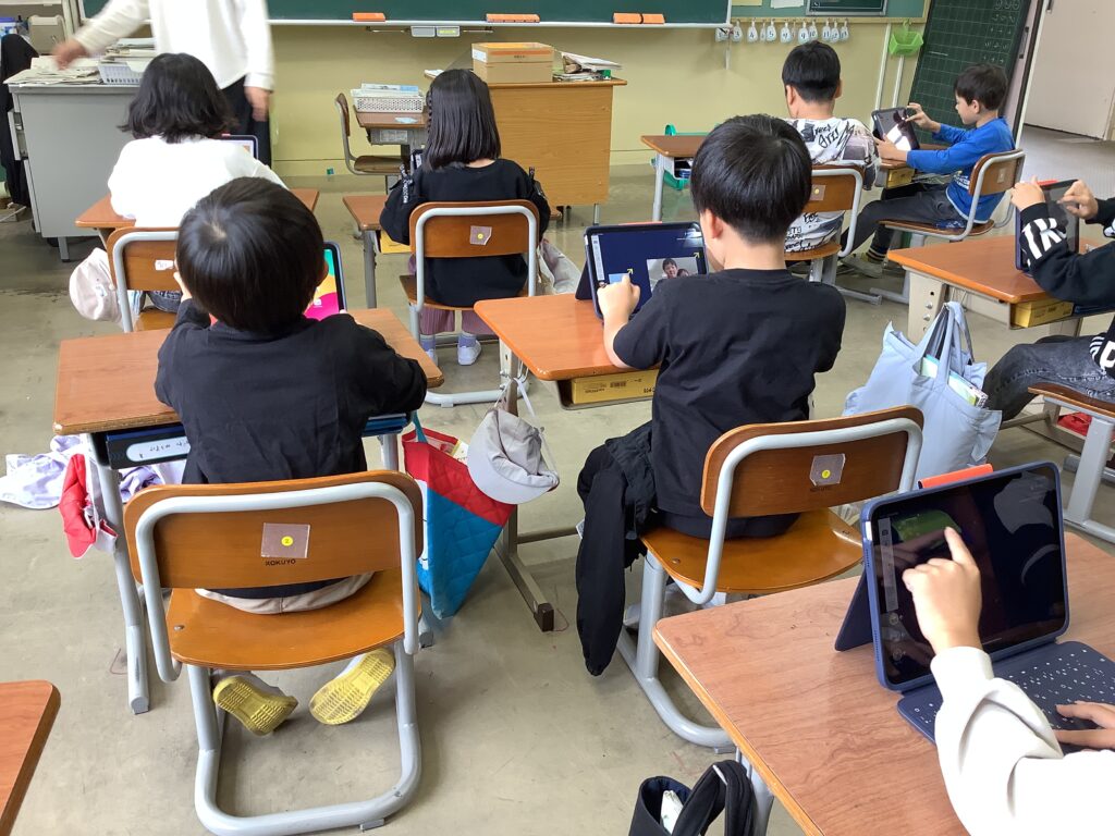 1年生は、今週、ずっとタブレットを使って、ロイロノートの使い方を学んでいます。写真を撮影して、先生が作った提出箱に提出したり、自分のカードを提出箱に提出したり。すぐに吸収してできるようになる1年生です。タブレット操作が楽しそうです。ロイロノートを使って自分のカード等を提出すると、先生は、タブレットでみんなのカードを一覧できるという、すばらしいメリットがあります。机間指導で、全員のノートを見ることも大切ですが、一覧できるメリットも大きいのです。いろいろな学びに活かすことができます。