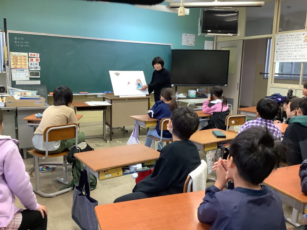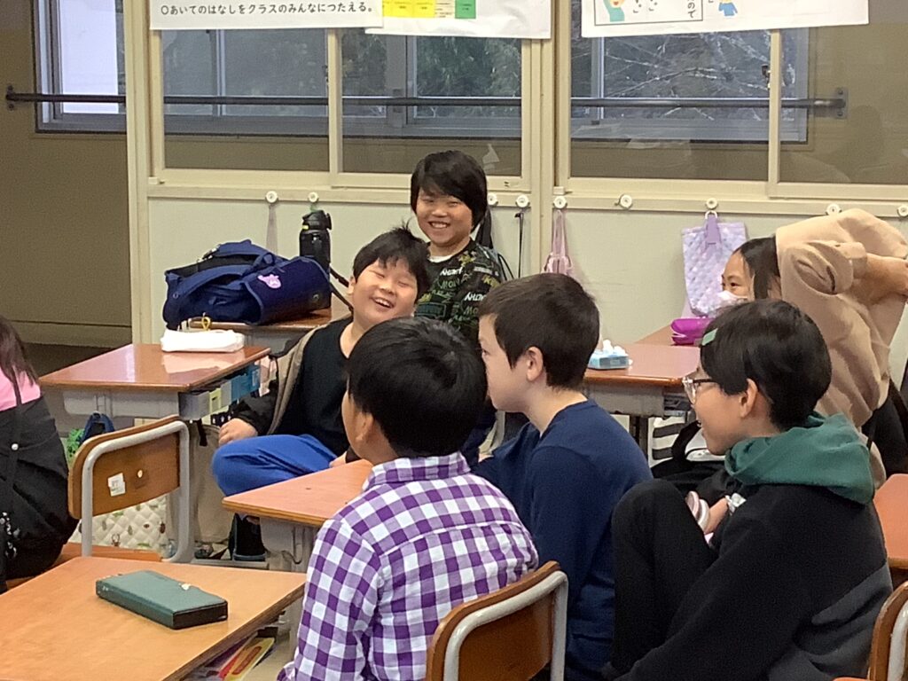 今朝は、朝の活動に、のつはる読み聞かせの会(ぴーたーぱん)のみなさんが、子どもたちに読み聞かせをしてくれました。3年生の教室では、吉四六(きっちょむ)さんの話をおもしろおかしく話してくれました。子どもたちの笑顔を見てください。とても喜んで話を聞いていました。私も聞かせてもらったので、「だ~んご、だんご~」が、頭の中でリフレインしています。