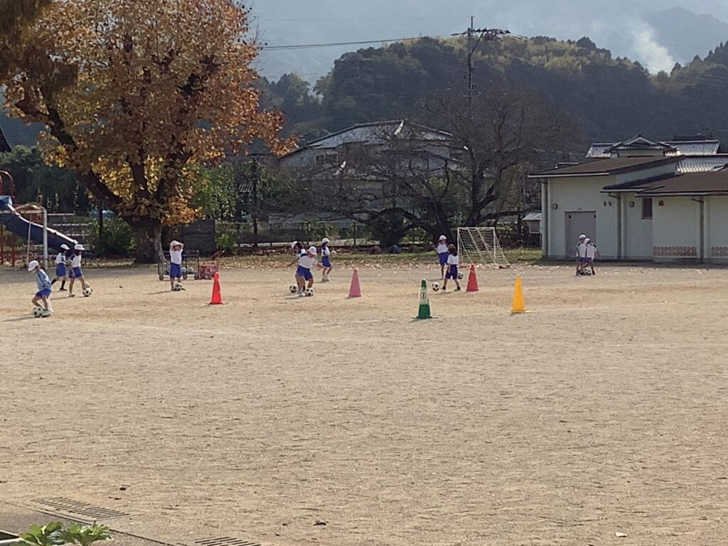 2年生は、体育で、持久走とサッカーの学びをしていました。5分間でどれだけ走ることができるか。前回よりも、記録を伸ばすことができたか。どうすれば記録を伸ばすことができるか。めあてを持って、考えながら走ると、記録は伸びるように思います。がんばれー。サッカーでは、ボールに慣れることが大切。まずは、基本のドリブルでしょうか。