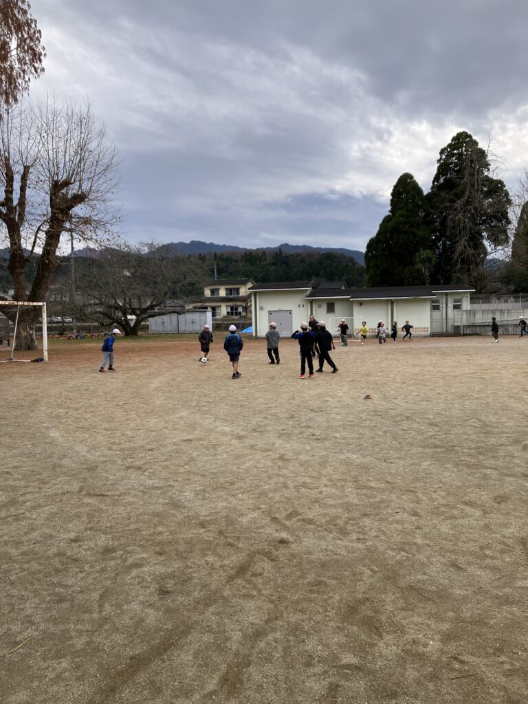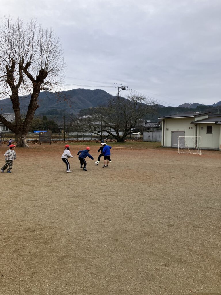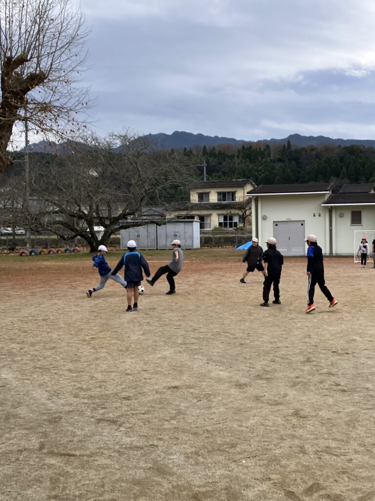 終業式の昨日、2学期最後のミニサッカーが行われました。学校で何とかサッカーができないかと考えて、ミニサッカーゴールを購入しました。購入には、弘済会の教育助成金を利用させていただきました。ありがとうございます。中休みと昼休みに学年の割り当てを決めて、ミニサッカーを楽しんでいます。ミニサッカーでは、高い確率でトラブルが生じるのですが、先生と訴えてきたとき、まずは、自分たちで解決するように話をしてみてと伝えています。また、怖い顔で怒りながらサッカーする子どもには、やるなら楽しくやろうよと声かけしています。自分との折り合い、他の人との折り合いなど、たくさん、学べるチャンスです。最近、ALTのオレ先生は強力な助っ人であることに、みんな、気づき始めました。華麗なシュートを放ちます。