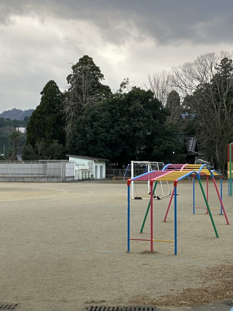 運動場がにぎやかです。子どもたちの声が聞こえます。野津原小学校児童育成クラブの子どもたちが、運動場で遊んでいます。走る子ども、サッカーをする子ども、いろいろです。元気な様子は、喜ばしい限りです。