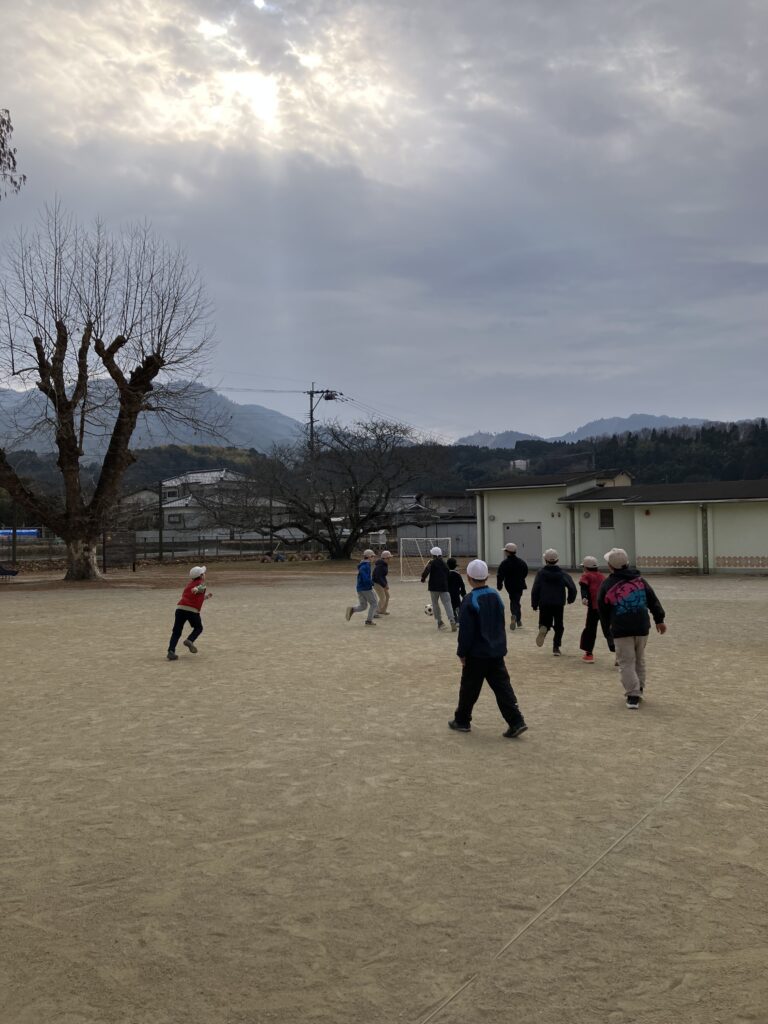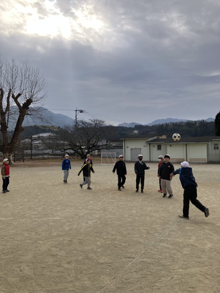 中休み、今日は、中学年がミニサッカーをしていました。これまで、4年生が単独ですることがほとんどでしたが、今日は、3年生と4年生が入り混じって試合をしていました。