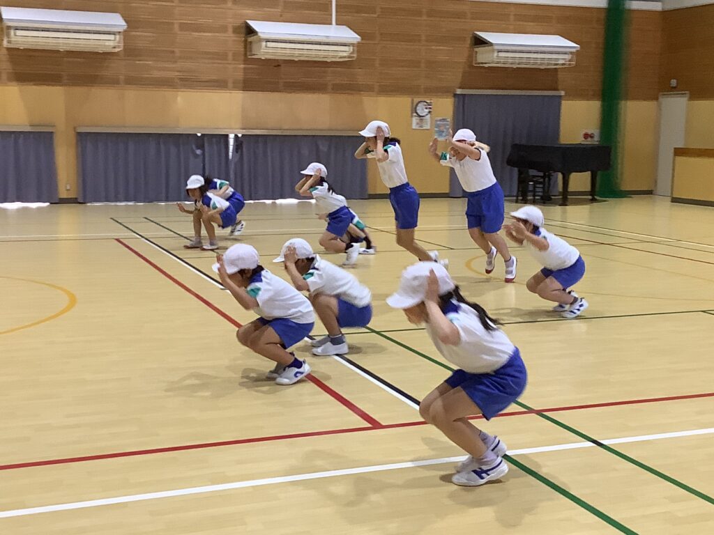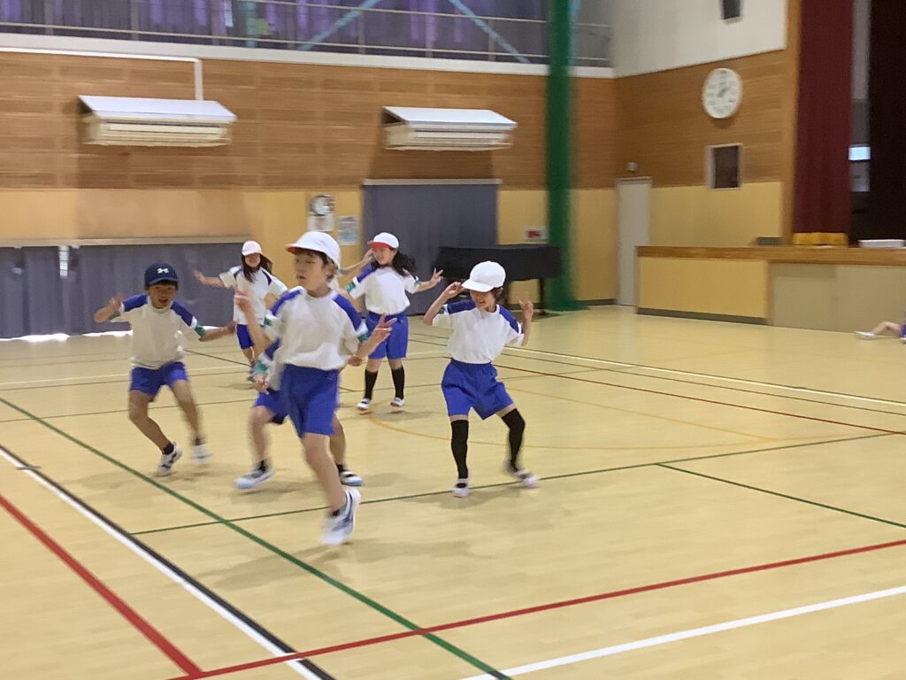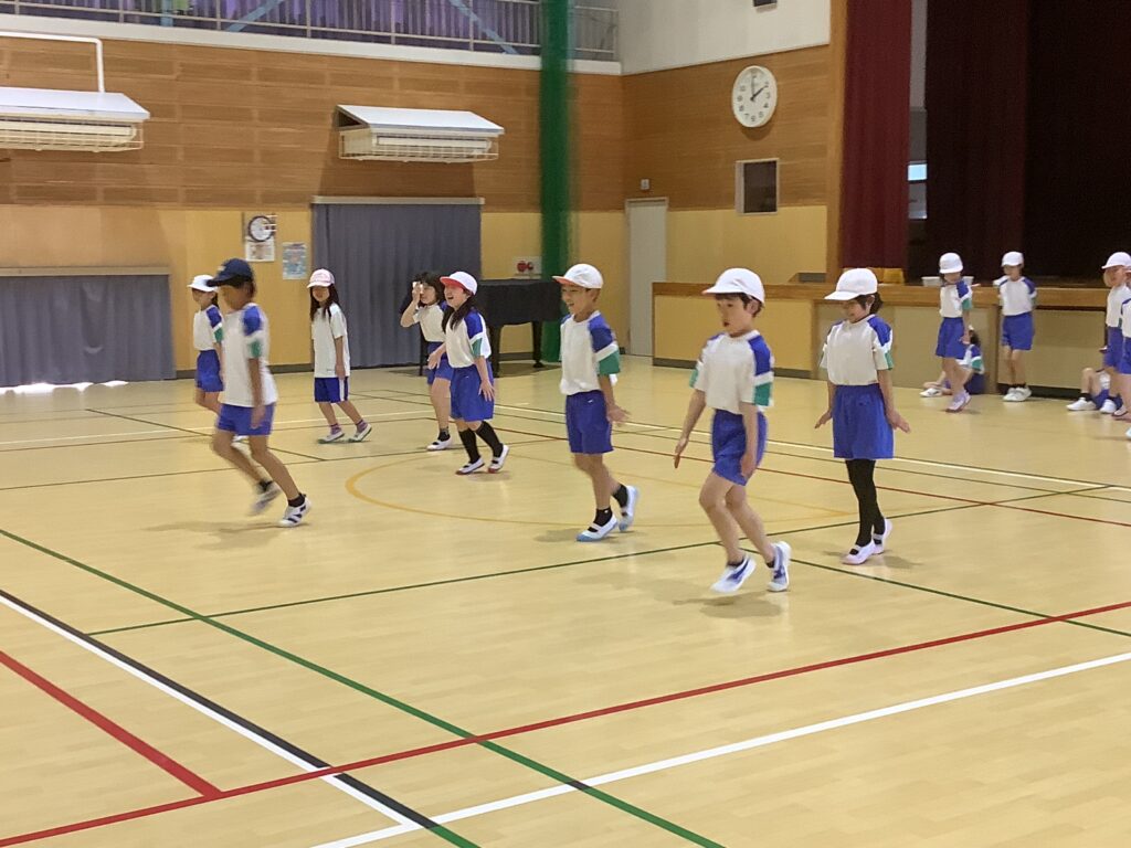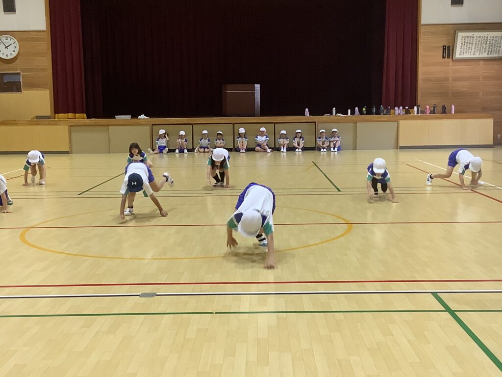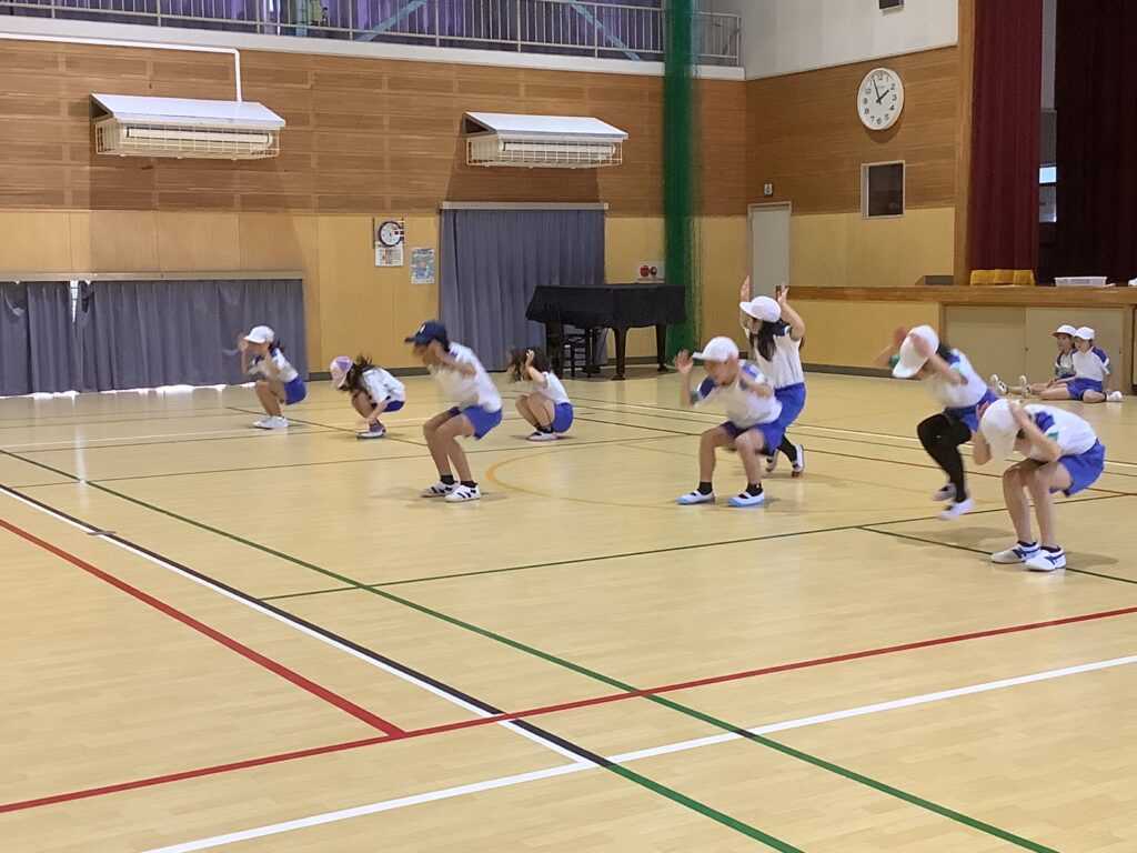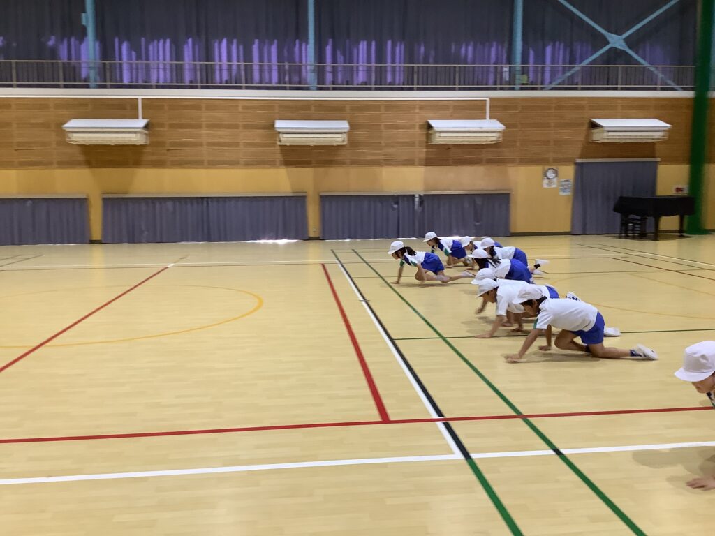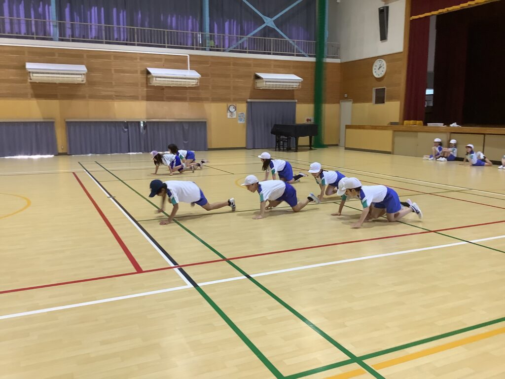 3年生は、体育で、いろいろな歩き方の運動をしていました。体育は、体を鍛えるだけでは上手になりません、頭も使いましょうと、先生は子どもたちに呼ぼかけていました。体育に限らずですが、先生の話を正しく理解して聞くことはとても大切です。「正しく」「理解して」を強調しておきたいと思います。先生は、大切なことを何度も話します。それを聞き逃していないか、考えながら聞く癖がつけられるとよいですね。体育に限らずです。どの歩き方をしているか、わかるでしょうか。くま。ペンギン。あかちゃん。かに。うさぎ。