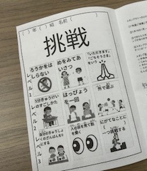 挑戦・・・レベル1「ろうかを走らない」「目をみてあいさつ」「『いただきます』『ごちそうさま』を言う」 等