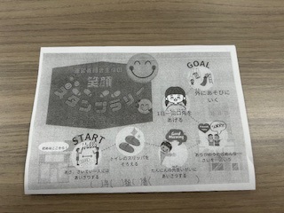 今回は、「笑顔」「挑戦」「思いやり」の3つの中から1つ選んで取り組みます。できた項目があったら、各学年のスマイルスペースに運営委員会がスタンプを設置しているので押すようになっています。