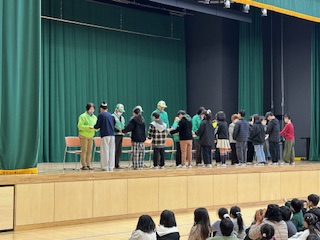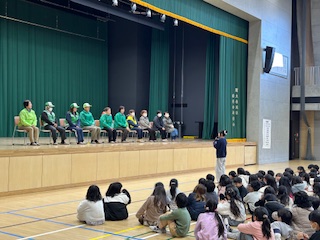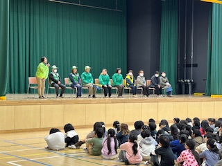 2月3日(火)の1校時に、登下校時にこどもたちの安全を守っていただいている見守りボランティアの方々をお招きして、感謝の気持ちを伝える会を行いました。