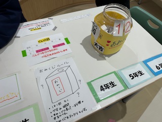 2月10日(火)の昼休みに図書館をのぞくと、図書委員会のこどもたちが楽しい取組をしていました。