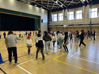 2月18日(水)は、トップバッターとして1年生と6年生が遊びました。関所じゃんけんです。1回戦は、1年生が関所になりました。たくさんの6年生が関所を通過することができました。2回戦は、6年生が関所になりました。あっという間に時間がたち、「もうちょっと遊びたかった・・・」とつぶやく1年生もいました。