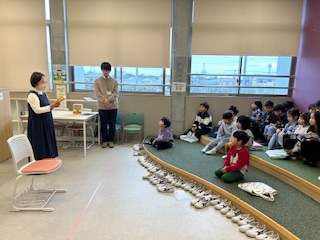 2月26日(木)の1校時に、東京子ども図書館の「子どもたちに本を贈ろうプロジェクト」により、本の寄贈がありました。1年1組のこどもたちが代表でいただきました。その後、読み聞かせがありました。読み聞かせをしてくださったのは、大在西小学校の読み聞かせボランティアの方です。
