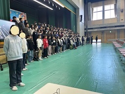 3月12日(木)に、卒業式の総合練習を行いました。卒業式が行われる時間通りに、役割のある先生にも参加してもらい、行いました。6年生は、いつもと違う空気に少し緊張している様子でした。