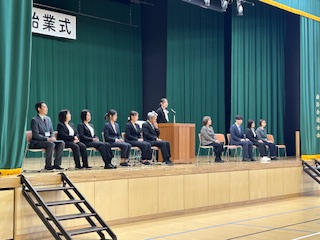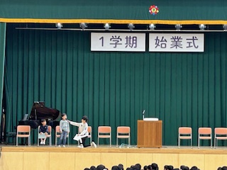 児童代表の言葉では、算数の九九をしっかり覚えたい(2年生)、友だちにやさしくする(4年生)、本当の意味で勉強をがんばる(6年生)など、今年度のめあての発表がありました。