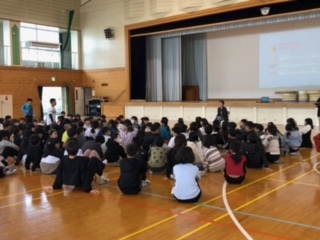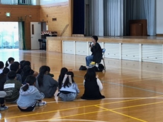 28日(火)、4年生が大分県盲導犬協会の森下様をお招きしての福祉学習を行いました。実際に盲導犬を見て、また講師の話を聞いて、子どもたちは「盲導犬以外にも、介助犬や聴導犬がいることを初めて知った」「補助犬がいることで、安心して外出することができるので、もっと補助犬の数が増えるといいなと思った」「これからは、困っている人がいたら勇気を出して声をかけようと思った」などの感想をもちました。貴重な体験をさせていただきました。