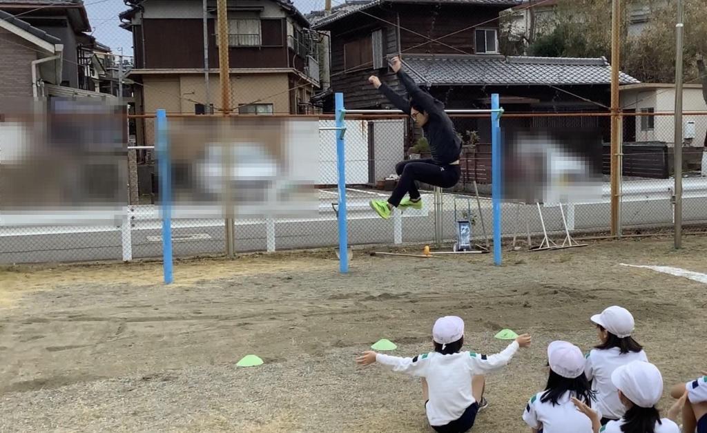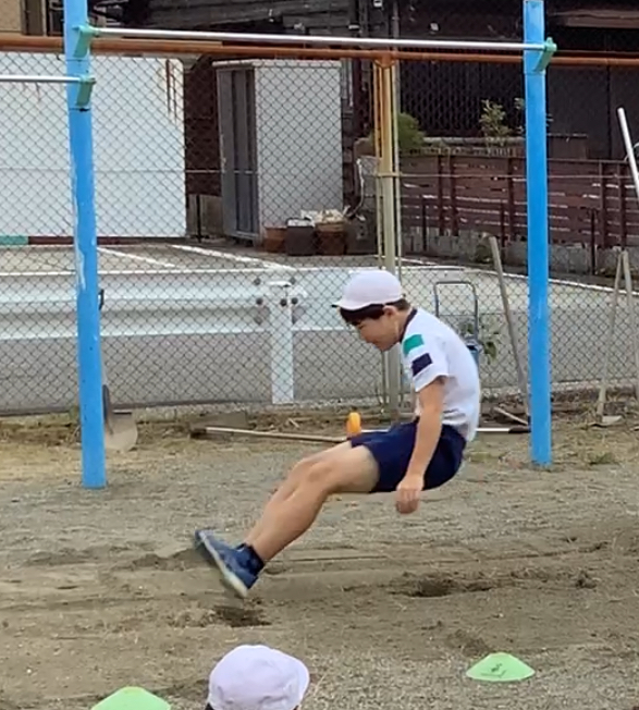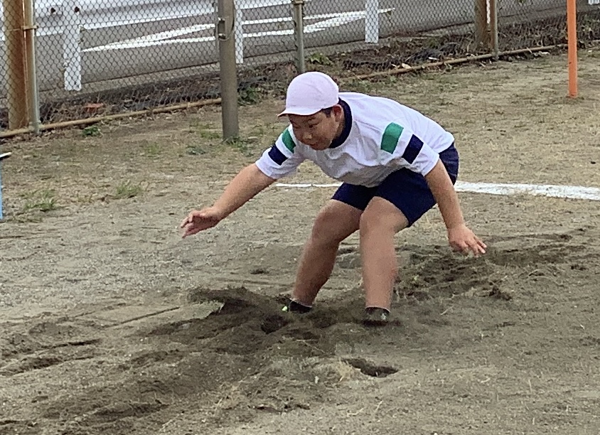 3~6年生、走り幅跳びの合同体育を行いました。講師は、元陸上短距離タイトルホルダーの竹島先生です。跳びあがる時と着地のコツを教えてもらいました。短時間ではありましたが、子ども達はすぐコツをつかみ、楽しく練習に取り組むことができていました。