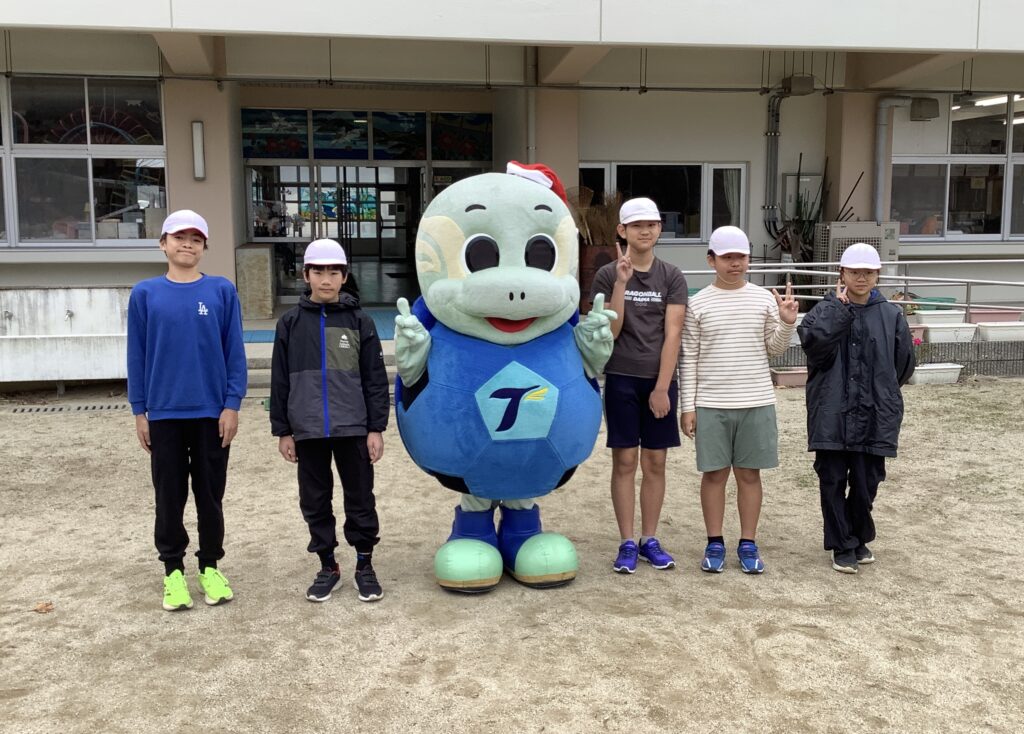 大変な出来事もありましたが、その分、成長につながった2学期でした。3学期も楽しみです!終業式では、代表の子が「2学期のふり返りと冬休みに楽しみなこと」を発表してくれました。また、中休みには、佐賀関小の子どもたちを元気づけるため、大分トリニータのニータンが来てくれました。みんなの良い思い出になったと思います。冬休みは、家族みんなでゆっくりすごしてくださいね!!