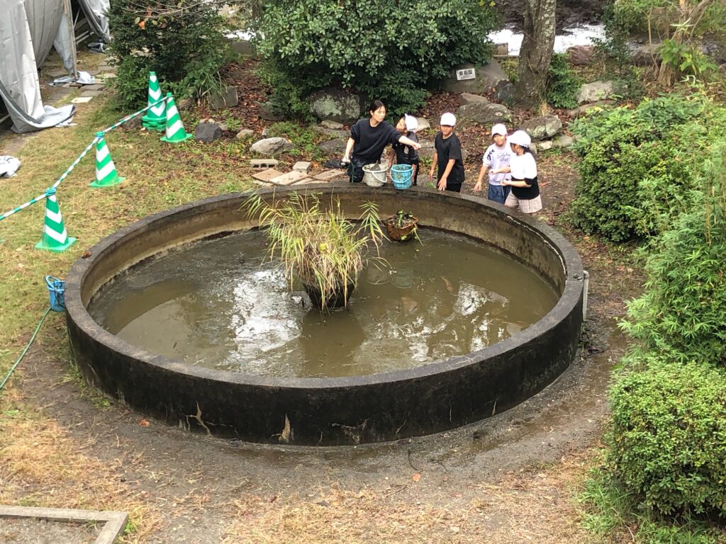 「こ~んな大きな魚が おったんで!」と 子どもたち