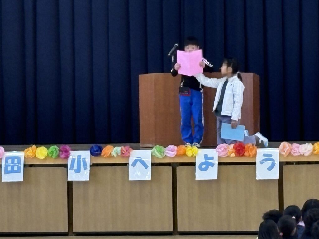4月8日(水)、令和8年1学期始業式がありました。校長先生の話の後、代表児童(3年生と5年生)が春休みに頑張ったことや新学期に頑張ることを発表しました。3年生の児童は、春休みにサッカーを頑張ったことや新学期に割り算や掛け算を頑張ること、5年生の児童は、バスケットボールや授業での発表を頑張ることを発表しました。いよいよスタートします。子どもたちみんなも目標を新たに頑張ってほしいです。