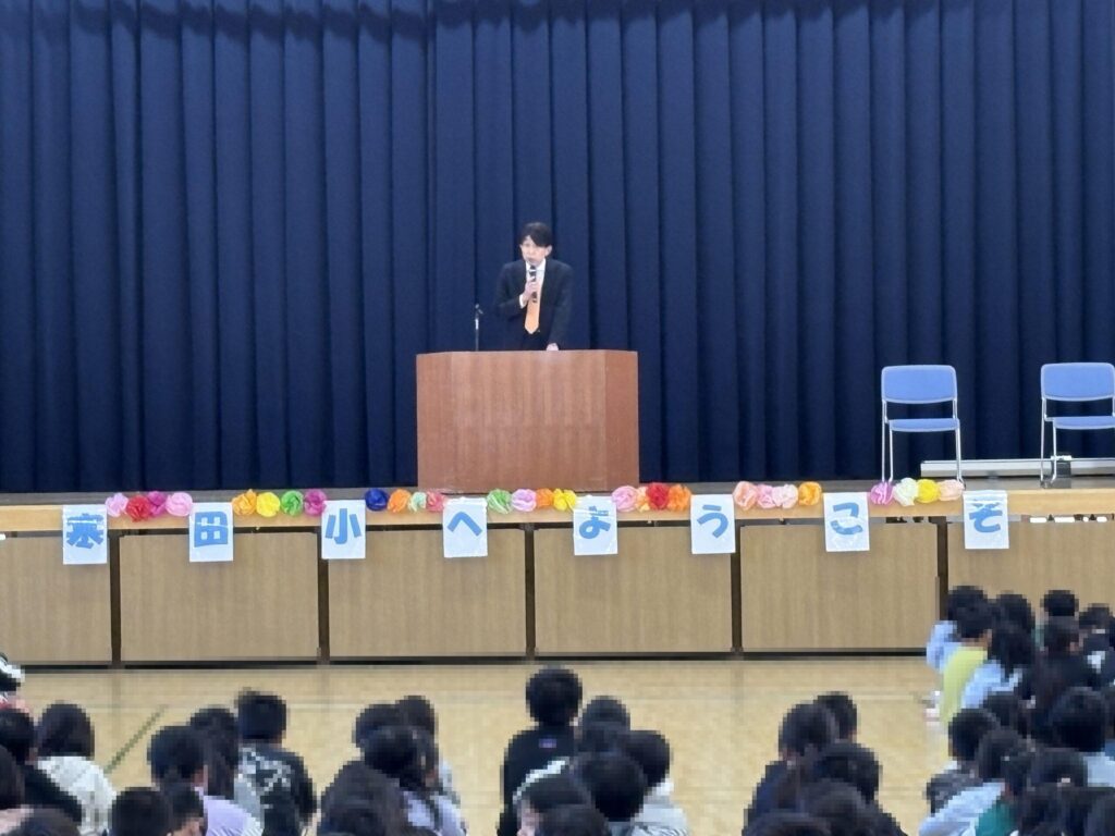 4月8日(水)、令和8年1学期始業式がありました。校長先生の話の後、代表児童(3年生と5年生)が春休みに頑張ったことや新学期に頑張ることを発表しました。3年生の児童は、春休みにサッカーを頑張ったことや新学期に割り算や掛け算を頑張ること、5年生の児童は、バスケットボールや授業での発表を頑張ることを発表しました。いよいよスタートします。子どもたちみんなも目標を新たに頑張ってほしいです。