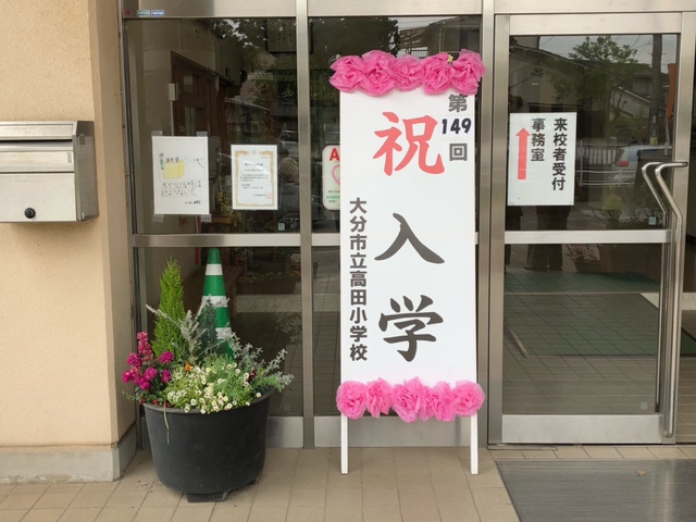 今日は昨晩からの雨が心配されましたが、新1年生の入学を祝うように天候も回復し、本校の第149回入学式が行われました。入学式では、70名の新1年生の子どもたちに、これから始まる高田小学校での生活を通して、本校のめざす子ども像である「たすけあう子」、「かんがえる子」、「たくましい子」についてお話をしましたが、新1年生のみなさんの話を聞く姿勢はとても立派でした。明日からいよいよ本格的に小学校生活が始まります。今日はゆっくりと寝て、明日元気に登校してくれることを楽しみにしていますよ!