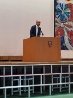 初日の今日は、開会式、平和弁論、英語弁論、吹奏楽部演奏、1年生と2年生の合唱コンクール、展示鑑賞、ビッグアート制作という内容でした。