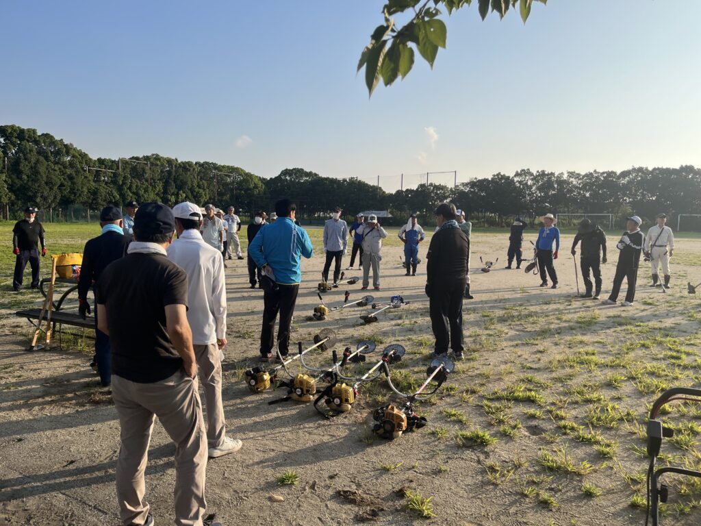 8月31日(日)の朝、7:00から城東・原川地区体育文化推進協議会の方々、原川中父親部、保護者OBの方々等多くの方々が参加して、原川中学校のグラウンドや敷地内の草刈りを行いました。地域の方々のおかげで、校内がとてもきれいになりました。刈った草は9月1日の始業式の午後から全校生徒で回収しました。早朝からでしたが、気温は高く、日差しも強い中、約2時間にわたって作業をしていただきました。暑い中、本当にありがとうございました。
